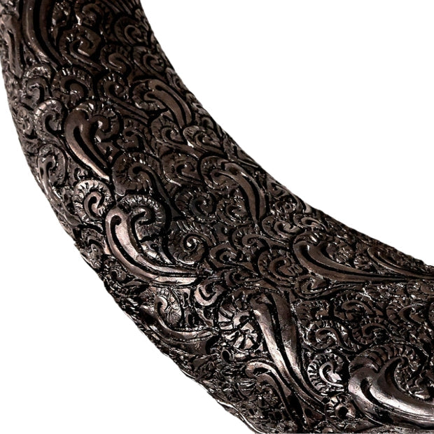 The intricate wave design is hand-carved by a talented Balinese artisan, using a technique that takes days for each piece and takes years to learn. The fluid pattern evokes both strength and surrender, serving as a meaningful daily reminder. Balinese animal skull carvings uphold the belief that nothing should ever go to waste.
