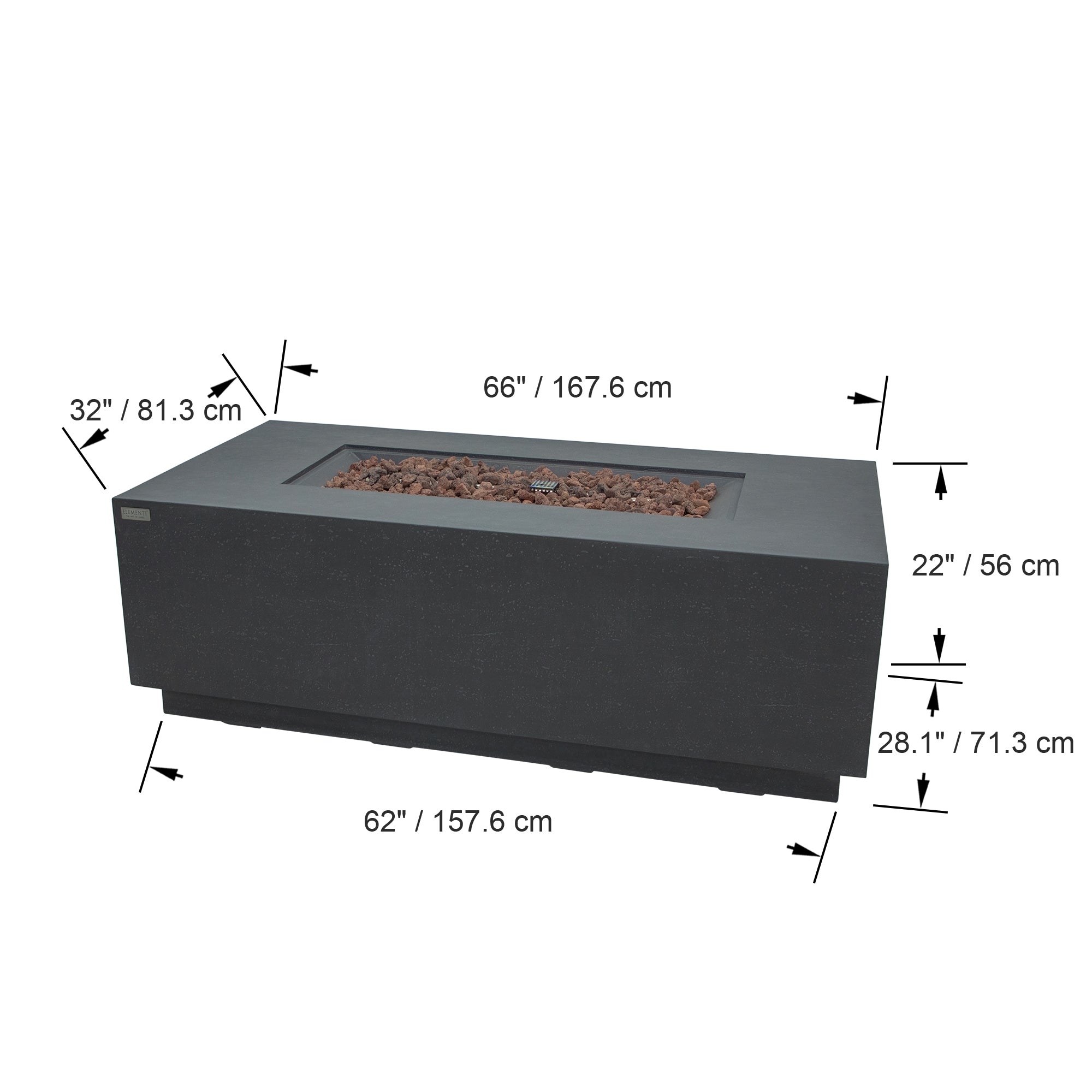 Andes 66” Concrete Fire Table with Hidden Tank - Dark Gray