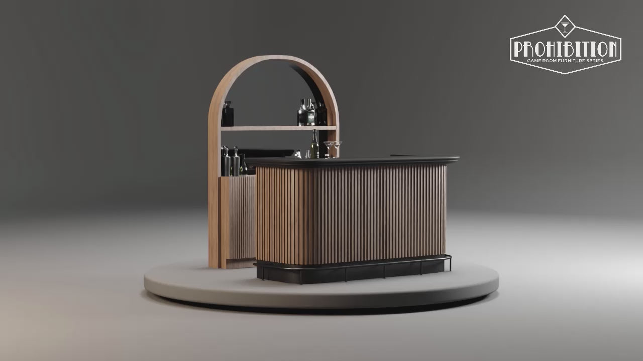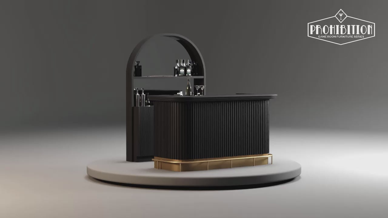 Step back in time to the glamorous era of the 1930s with the 84" Prohibition cocktail bar from RAM Game Room. This sophisticated piece exudes the charm of a bygone era with its sleek and elegant design, reminiscent of the opulent cocktail bars of the Art Deco period. Crafted with meticulous attention to detail, the Prohibition cocktail bar features ample storage space for all your bar essentials, allowing you to entertain guests in style.